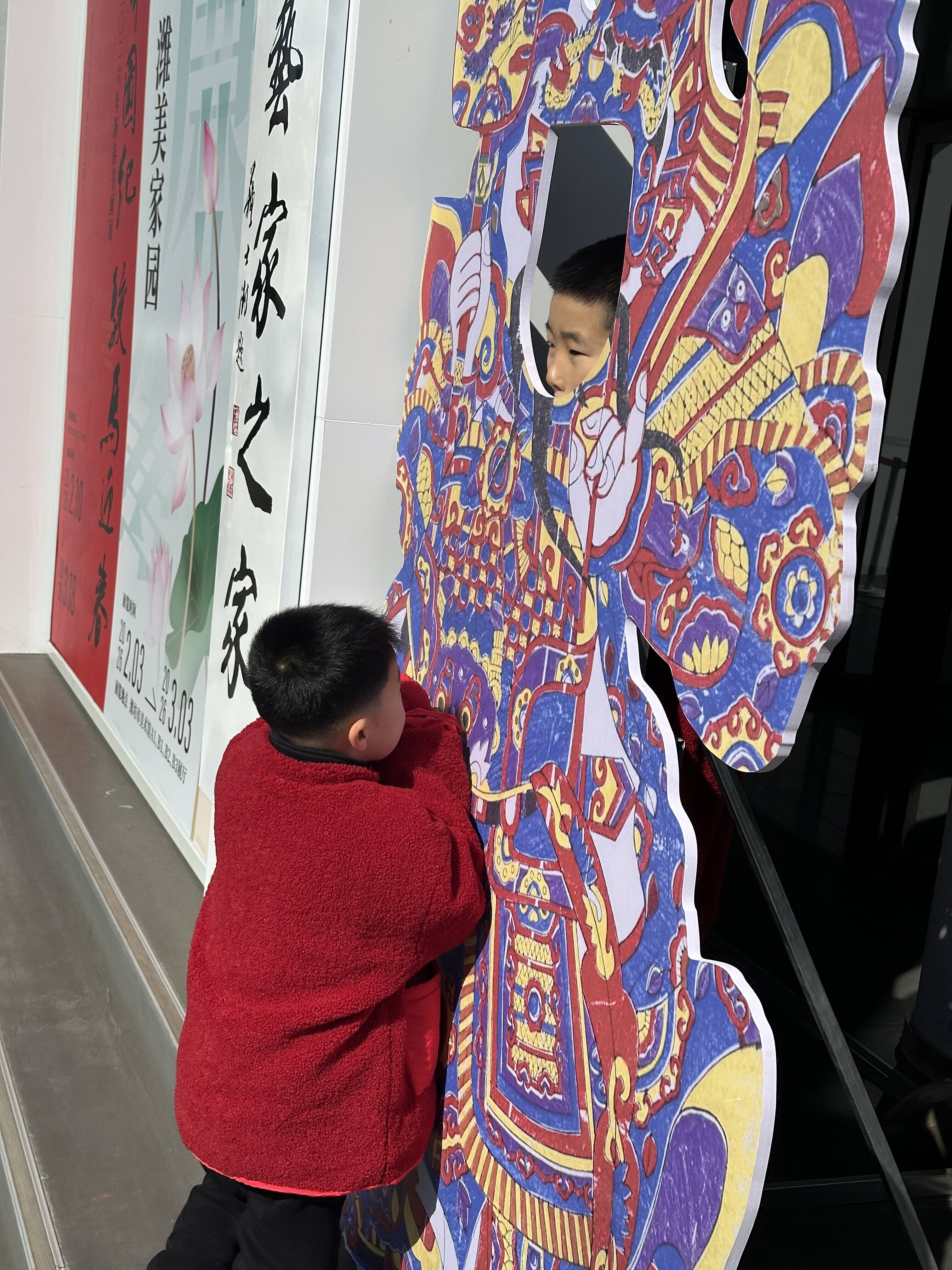 美術(shù)館不僅是藝術(shù)的殿堂,更是春節(jié)里充滿煙火氣的“城市文化客廳”。為了讓年味兒更濃,美術(shù)館推出了一系列“零門檻”的惠民體驗(yàn)活動(dòng),讓藝術(shù)真正“活”起來。在美術(shù)館的門廳和公共空間,新春藝術(shù)廟會(huì)熱鬧開展:門神年畫裝置拍照打卡,讓孩子們體驗(yàn)?zāi)戤嬂锏娜の?;非遺傳承人帶來了楊家埠木版年畫展示和體驗(yàn),“馬到成功”“馬上有?!背錆M溫度與情誼;年畫套印體驗(yàn)獲得一致好評(píng),孩子們在家長的陪伴下親手印制一張“搖錢樹”和“增福財(cái)神”,在墨香與歡笑中觸摸傳統(tǒng)文化的肌理。